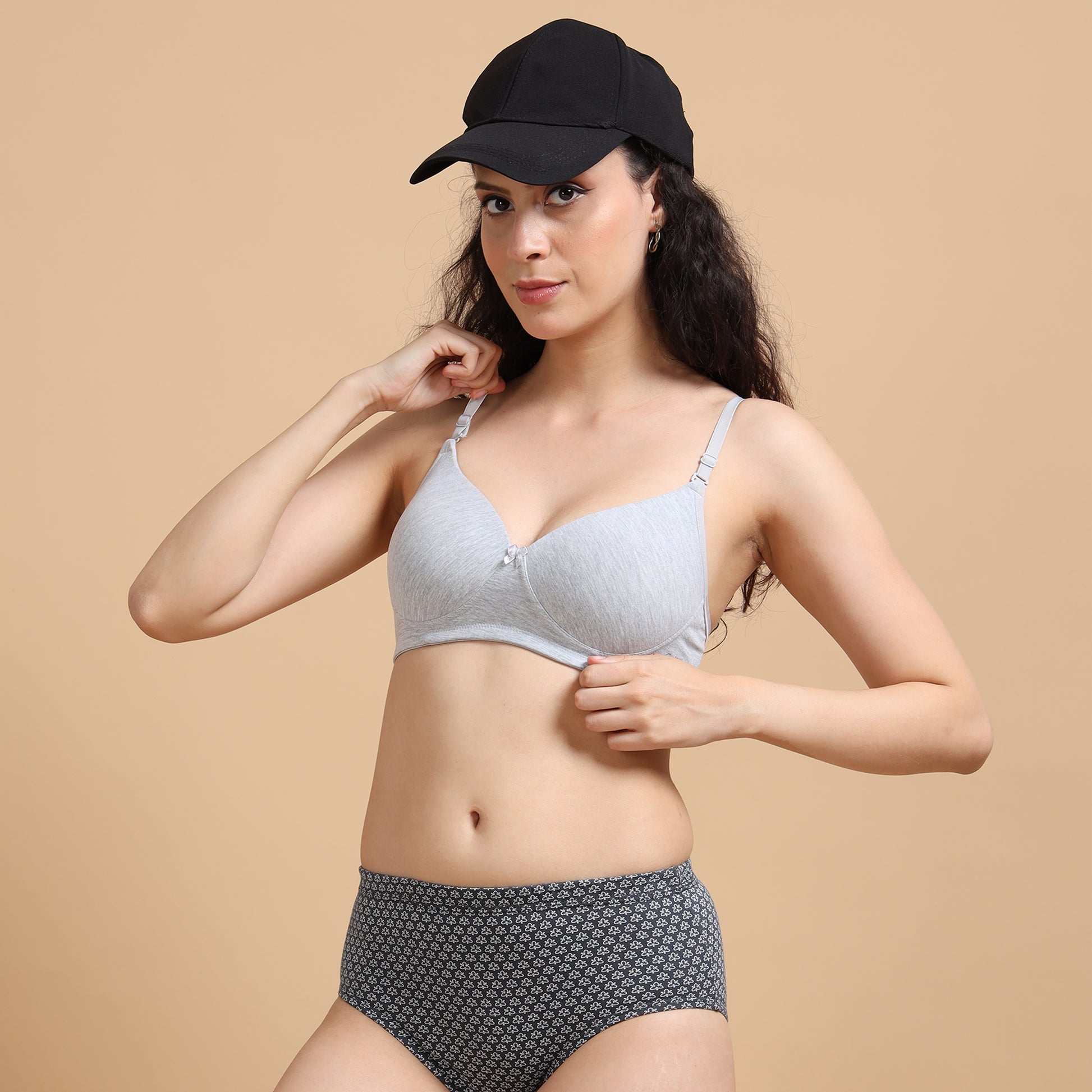Ecstasy ECB100 Grey Mel Cotton Padded Bra – Multiway Fit with Everyday Ease
